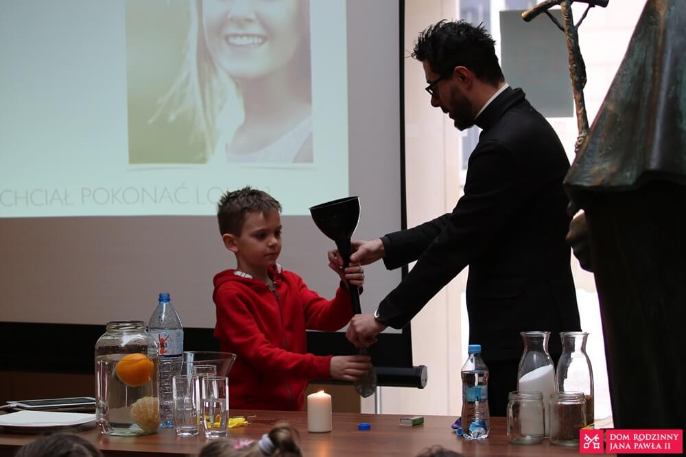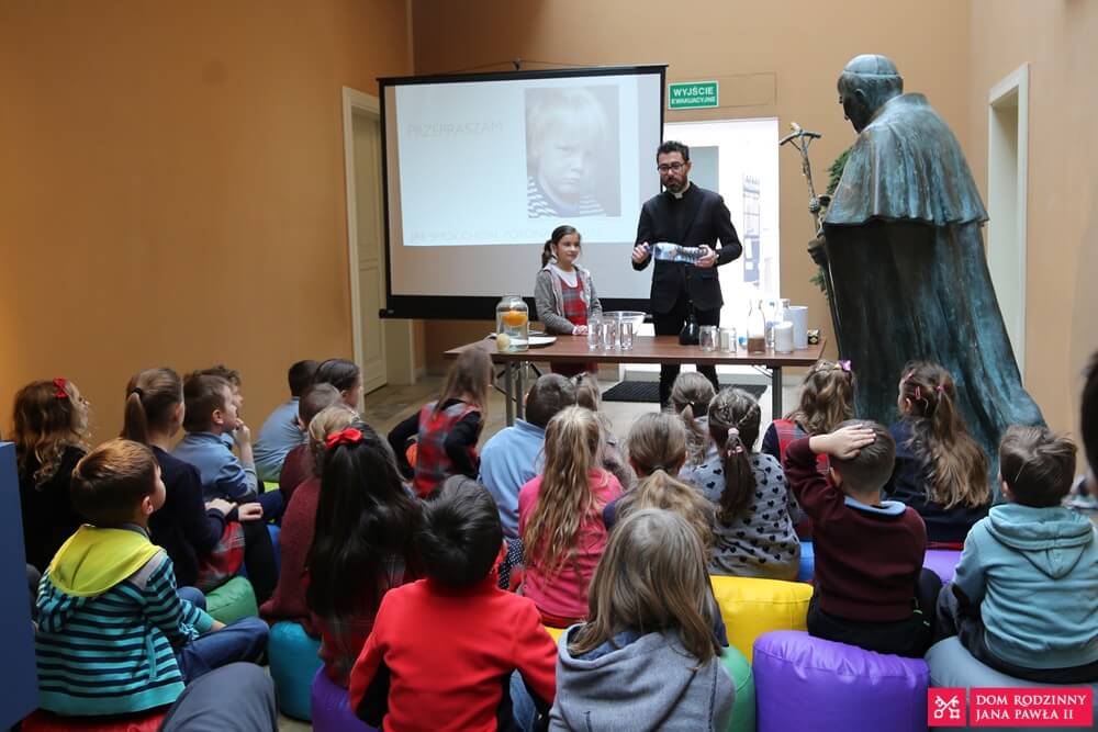 Children had the opportunity to learn about three great ideas of Lolek for sulks and pout. They learned how to deal with difficult emotions, such as anger, sadness and aggression, and how to express them in a socially acceptable way, avoiding the negative effects of suppressing them. By means of physical experiments, Fr. Lukasz proved to the children the power of the words: Please, Thank you and I’m sorry. There was a lot of laughter and a lot of fun.