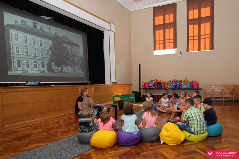 The final of the action took place on August 29 this year. The children accompanied by their parents met in the theater room of the Catholic House. Before receiving their parcels prepared thanks to the kindness and generosity of Mr. Jan Burkat, the owner of the JAN shopping center network, they took part in the workshops dedicated to the education carried out in the period 1920 – 1930. Thus, they got to know the aspect of school education in the time of Karol Wojtyła and could see what school accessories were used in that period.